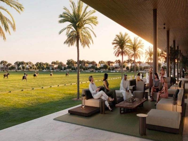 Available in four main villa typologies: 3‑Bed Luxury, 4‑Bed Luxury, 5‑Bed Ultra Luxury, and 5‑Bed Equestrian Luxury. Most villas include features like private gardens, terraces or rooftop decks, parking for 2–3 cars, maid quarters, and some offer direct views of the polo fields.